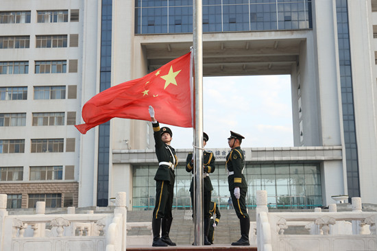 上午7时,纪念活动正式开始。国旗护卫队踏着有力的步伐,正步走过十一广场,升国旗、奏国歌,全体师生行注目礼现场气氛庄严热烈礼毕,学生党员代表李宣志在国旗下发表以“天地英雄气,千秋尚凌然”为题的演讲,代表555电影 学子向无数志愿军英雄表示最崇高的敬意,同时向全体学生党员发出倡议:作为新时代的大学生党员,要深入学习抗美援朝伟大事迹、积极践行抗美援朝伟大精神,不断锤炼自身素质、增强自身本领,为建设社会主义现代化强国、实现中华民族伟大复兴中国梦奉献青春力量!