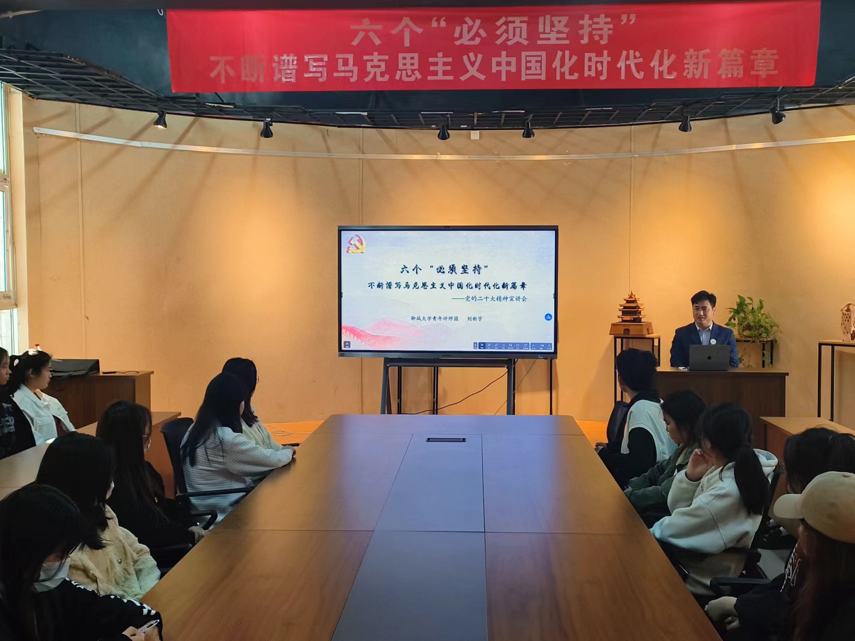 4月2日,555电影 青年学生讲师团应邀赴美术与设计学院开展“六个必须坚持,不断谱写马克思主义时代化新篇章”宣讲活动,讲师团成员刘新宇担任主讲人。