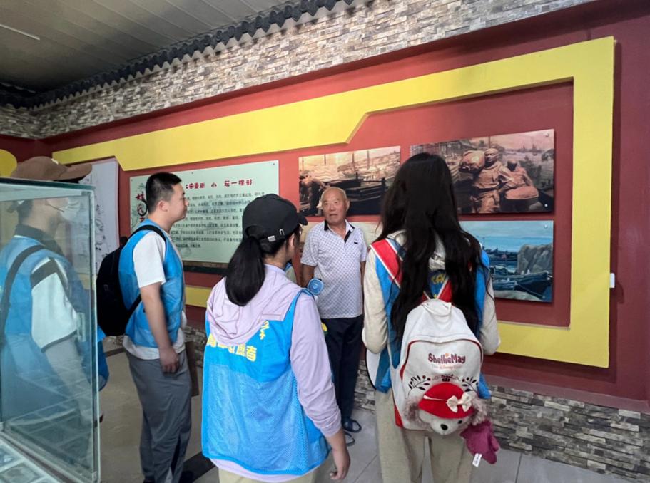 团队成员首先在王杰先的组织下与多位油坊古镇的居民进行简单交流,倾听当地百姓对运河功能文化的认识见解。在调研过程中,村党支部书记宋洪伟热情接待调研团队,并为大家深入讲解运河对古镇经济、文化的深刻影响以及运河当前面临的问题和挑战。随后,先行队队员在宋洪伟的带领下参观油坊村史馆,探索运河文化底蕴下油坊镇的发展历程。如村中的传统号子,源自劳动人民辛勤的汗水和热情,蕴含着船工们坚毅不屈的精神风貌,是运河文化的重要组成部分。随后,团队又走进益庆和盐店博物馆,了解食盐专卖的历史和益庆和盐店的来历,并通过沙盘模型生动还原当时油坊码头的繁荣景象。博物馆内复原的盐仓储、称重体验区和盐市等都为游客提供了一场沉浸式的历史体验。活动结束后,队员周新新表示,本次调研实践收集到运河居民珍贵的记忆碎片,对进一步提升对运河文化认识和学习的深度有重要作用。