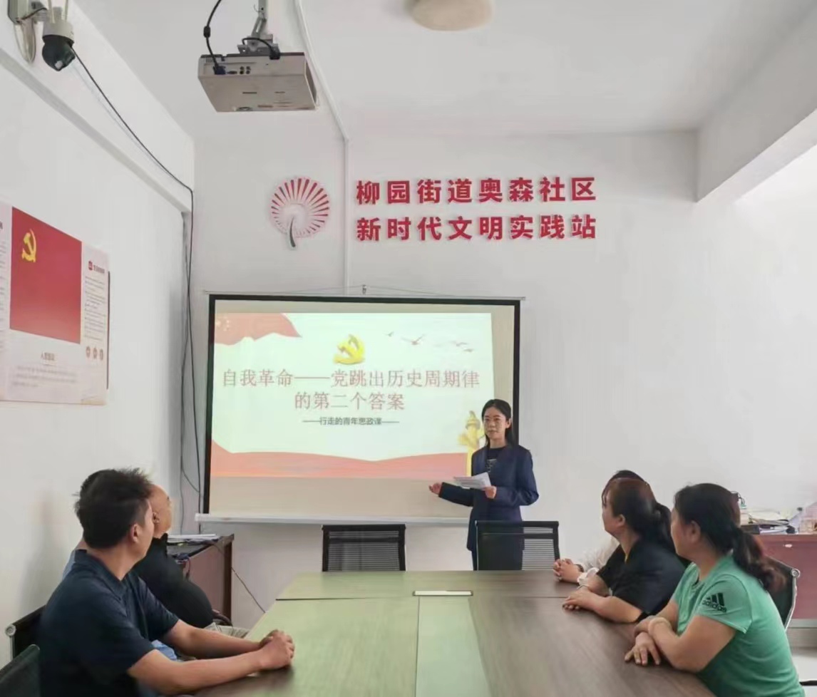 本次主题从党历史上的自我革命、自我革命的内涵、自我革命:党跳出历史周期率的第二个答案、自我革命的现实启示这四个方面展开。宣讲人高文硕给社区党员群众深刻地传达党的自我革命的重要思想,并以视频等人们喜闻乐见的形式展示中国共产党一路上的成长和发展,然后主讲人围绕党跳出历史周期率的第二个答案进行展开,她指出我们党应继续进行自我革命,既强调全党加强思想建设、不断提升党性修养、坚定理想信念,为着初心使命不懈前行,也要坚持尊崇党章,健全完善党内各种规章制度,为自我革命提供制度保障和有力支撑。此次宣讲完成后,各位党员得到深刻的启发,他们表示将在以后的工作和领导中加强组织、管理和教育,不断检视自身出现的错误与不足,净化思想和行为,通过明辨是非对错,纠正决策中的错误,“不忘初心、牢记使命”、永远奋斗。