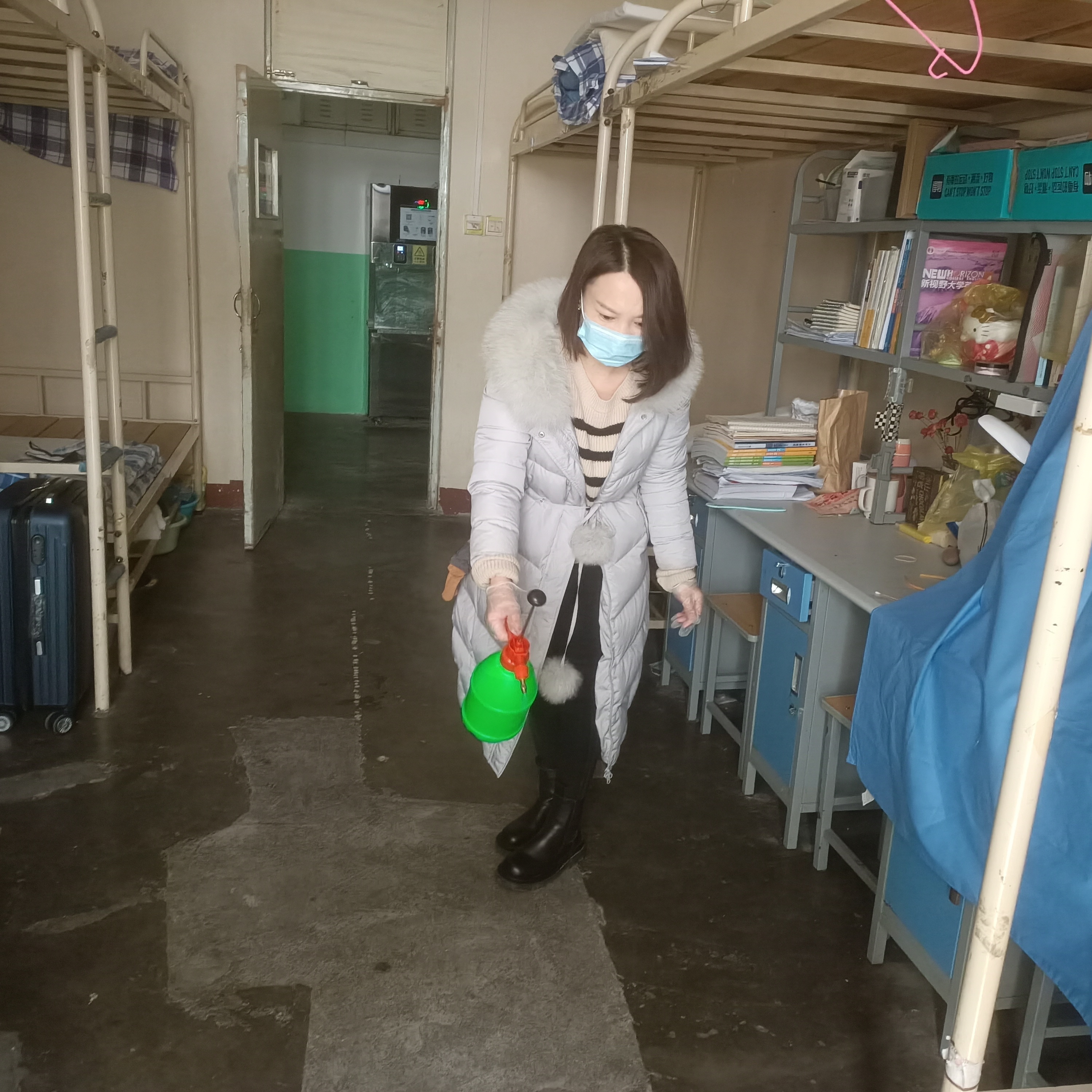 学院做了详细的工作安排,并与学校物业进行多次沟通与协商,对此次学生宿舍及楼道清洁消杀的防疫目的、流程及要求等制定了具体可行的详细操作方案,保证了此次消杀工作的规范性和实效性。学院辅导员和班主任严格按照制定的操作方案以及寝室消毒标准对学生寝室进行消毒,消毒区域覆盖学生寝室的卫生间、阳台、地面、门把手等高频接触物表面。除寝室之外,辅导员和班主任对走廊、洗手间、踢脚线、墙壁缝隙等容易滋生细菌的重点部位仔细地进行药物喷洒,杜绝不起眼的角落产生风险。在消毒防疫工作进行的同时,辅导员和班主任也对宿舍安全进行全方位的排查,对学生用水用电安全隐患一一检查并记录做出相关建议,为学生营造安全的宿舍环境。