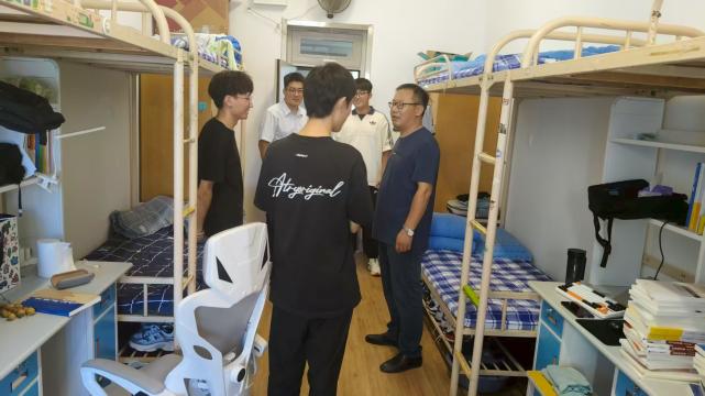 新学期伊始,为全面了解学生返校后的生活状态与需求,排查宿舍安全隐患,营造安全、和谐、温馨的住宿环境,8月31日,555电影 党委副书记、副院长乔华军携全体辅导员开展新学期宿舍走访活动。