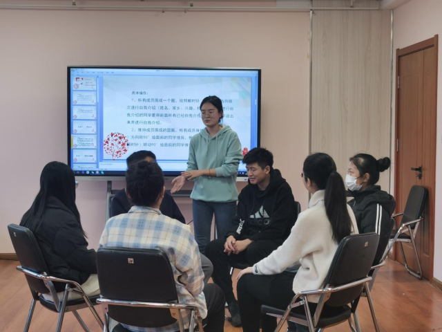 主持人郭洋静介绍此次活动的主题为心灵成长与悦纳自我,围绕“串名字”、“我的自画像”、“多元排队”、“松鼠和大树”、“看我走过来”五个环节展开。在“我的自画像”游戏环节,大学生心理朋辈辅导员分成两组进行游戏,通过绘画自画像的方式认识自我,创作完自画像后,两组成员互相猜测对方成员的自画像,引导大学生心理朋辈辅导员们对自我有了一个清晰的认识。在“多元排队”游戏环节中,郭洋静分发不同的关键词,大学生心理朋辈辅导员们根据关键词找到对应的队伍,在此过程中不能交流,充分考验大家的默契程度,增强彼此之间的情感联系。通过“松鼠和大树”游戏环节,大学生心理朋辈辅导员们彼此熟络,相互配合,增强团队协作能力。活动最后,郭洋静鼓励大学生心理朋辈辅导员认识自我,自信交流,与大家一起共同进步。参与者王新慧表示,通过此次团体辅导活动,对大学生心理朋辈辅导员群体有了更加深入的了解,也增强自己的团队协作意识与沟通能力。