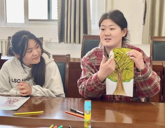 主讲人高群以“随心绘画大树”作为引导,让各位朋辈心理辅导员对绘画疗法有初步了解,并鼓励大家在绘画结束后分享感受,以更好地掌握基础的疗法技巧。主讲人介绍绘画疗法的步骤包括准备、引导、创作和反思阶段,详细讲述绘画疗法的基本概念和重要性,提出多种绘画疗法的具体实践方法,阐述其在心理治疗中的工作原理。活动过程中,高群结合具体案例展示绘画疗法的实际应用,分析案例中绘画作品所表达的情感和心理状态,与朋辈心理辅导员共同讨论绘画疗法在案例中的效果和意义,并在日常工作中对其加以灵活运用。活动最后,主讲人对本次活动进行总结和展望,强调绘画治疗实践中应注意伦理原则,如保密、同意和文化敏感性,鼓励朋辈心理辅导员在使用绘画疗法过程中与同学们建立和维护治疗边界,确保参与者的隐私和安全。参与者王新慧表示,作为学院的朋辈心理辅导员,此次活动使其学习到绘画疗法这种新技能,提高自身能力的同时也能够在实际应用中有效地帮助身边同学。