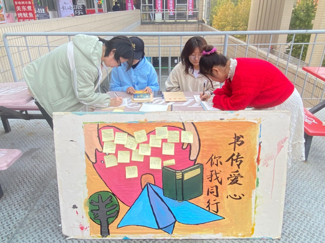 “用书本传递爱心,让渴望的眼睛看到希冀的曙光。”活动主持人讲述了捐赠活动的理念、流程以及活动要求,并说明本次捐助的物品将会送至贫困地区,为需要的孩子们送去温暖和关怀。同学们在便利贴上写下自己的祝福并张贴在展板上。其中,写着“希望你们可以读书启智,可以读书明理”的便利贴尤为瞩目,这小小的一张便利贴承载了他对贫困地区孩子们的牵挂。随着爱心捐书活动的有序开展,捐赠的物品也逐渐丰富多样,既有充满童趣的故事类,也有历史悠久的名著类,还有崭新的笔记本等。活动负责人在旁边做好记录,并整理捐赠书本的情况。这些书本承载了同学们的一片爱心,为远方贫困的孩子们送去一份健康向上的精神食粮,撑起一片知识的天空。