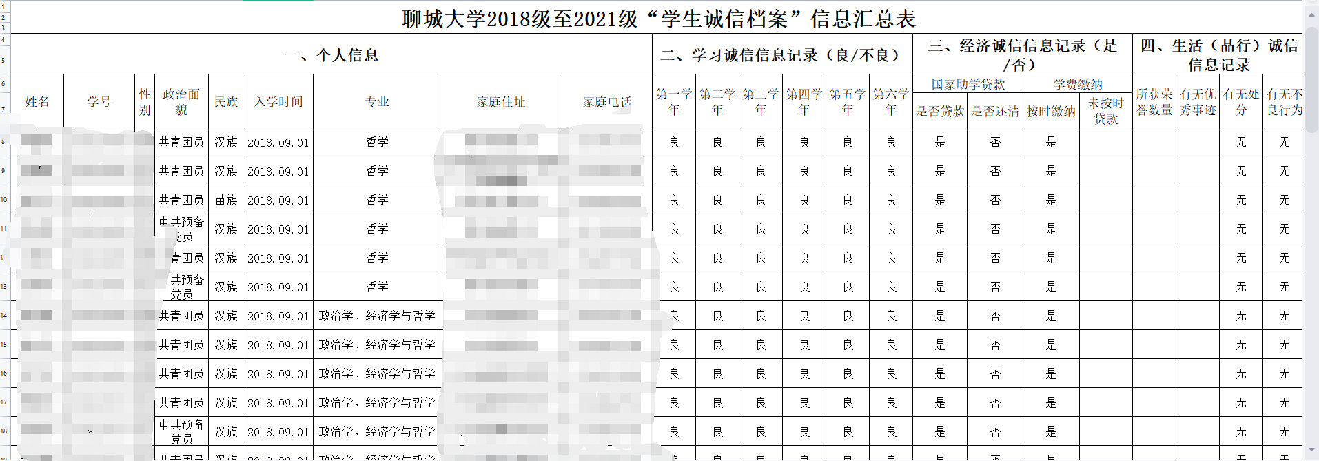 此次学生诚信档案的建立主要包括三个方面的内容:诚信档案内容的确立,学生各类资料的获得、分析以及对学生的信用评估。负责人为每一名同学发放诚信档案表使其自主填写相关信息,学校留作存档,并采集汇总了电子版,记录学生在大学生活的诚信信息。诚信档案主要包括学习是否诚信、经济是否诚信、生活品行是否诚信以及大学生个人承诺书。诚信档案反映了诚信主体在社会生活的各方面诚实守信程度的历史记录,涵盖经济领域的信用程度记录、道德品质减实状况和政治思想文明情况,并在学生思想政治工作和管理工作中发挥重要作用。学生在建立档案的第一时间承诺、签字。