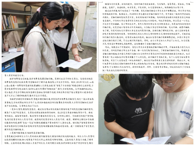 本次活动针对日益暴露的大学生金融风险事件,通过对本学院学生的金融安全意识及风险防范能力进行调研。活动负责人事先发布本次活动主题与内容,要求参与者们自行上网查阅资料并制作以金融知识防诈骗为主题的调查问卷,让同学们对于金融安全问题、金融市场以及金融所涉及风险进行初步理解和掌握。采访环节,同学们在校园内随机寻找学生邀请其填写调查问卷,询问其关于金融理财的认识与看法,了解同学们是否有理财习惯,为调研报告做好充分的准备。进入交流环节,同学们以活动过程中所得到的调查结果为基础进行讨论、交流成果,分享自身关于金融防诈骗方法的看法。通过此次活动,同学们学习到有关金融防诈骗的知识,意识到保护自身财产安全的重要性。