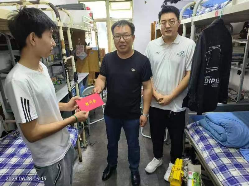 在交谈过程中,乔华军鼓励同学们要充分利用时间努力,保持积极健康的生活态度,发扬吃苦耐劳的精神,努力克服学习和生活中的困难,努力学习,以优异的成绩回报学校、回报社会。面对学校老师的暖心行动,同学们的感激之情溢于言表,他们纷纷表示,学校和老师带来的不只是物质上的关怀,更是精神上的支持与慰藉,让大家懂得学校与老师都是他们前行路上的坚强后盾,唯有发愤图强,争做表率,做好新时代的答卷人,才是对学校与老师最好的回报。