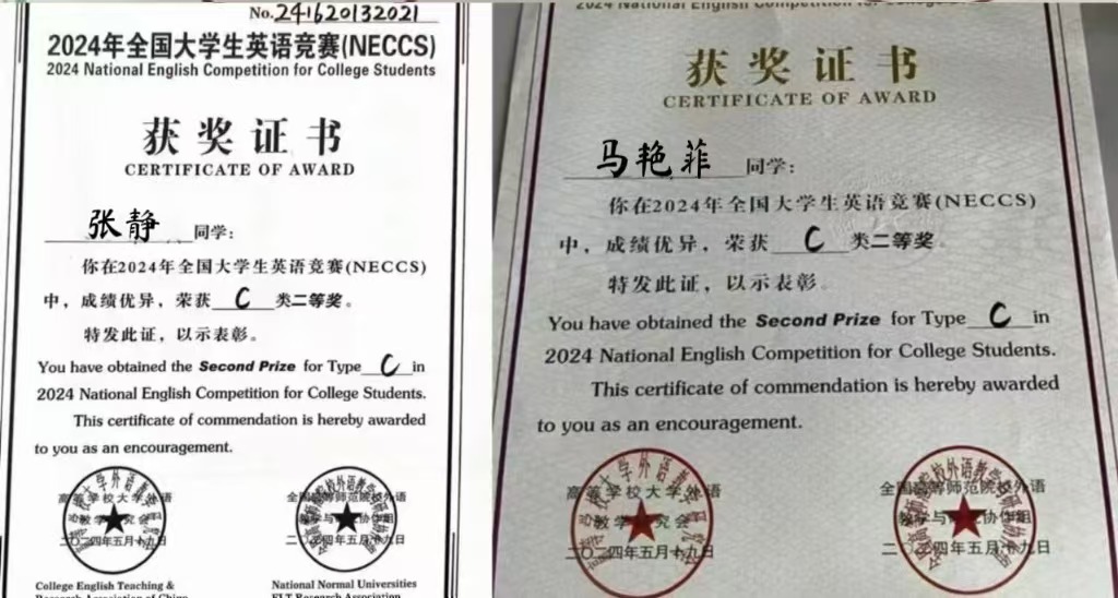 【资助育人取得成效】张静、马艳菲在“全国大学生英语竞赛”中荣获佳绩