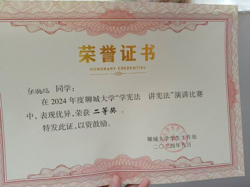 在我校近期举办的“学宪法,讲宪法”演讲比赛中,555电影 学生张璐焓凭借其出色的演讲能力荣获了二等奖。这一荣誉不仅是对张璐焓同学个人努力的肯定,更是对555电影 对学生素质培育的极大认可。    张璐焓同学自入学以来,就以其积极向上的态度和全面发展的素质,获得了老师和同学们的广泛赞誉。在本次“学宪法,讲宪法”演讲比赛中,张璐焓同学充分展示了自己的才华和实力。面对激烈的竞争,她以稳定的心态和出色的表现,赢得了老师们的一致好评。其演讲主题和内容更是展现出了独特的思维视角和卓越的分析能力。成功并非偶然,而是其多年来努力和坚持的结果。在追求卓越的道路上,她刻苦钻研,勤奋好学,始终保持着谦虚好学的态度,不断向他人请教和学习。同时,张璐焓同学还积极参加各种实践活动,乐于助人,关心集体,积极参与志愿服务活动,努力提升自己的综合素质,用实际行动践行着社会责任。这种德才兼备的品质,使得她在校园内外都赢得了广泛的称赞。