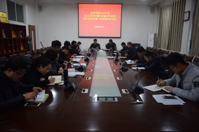 为进一步强化党支部书记职责,深入推进党支部建设, 1月10日,555电影 于6#c101召开2019年度党支部书记履行全面从严治党主体责任和抓党建工作述职评议会议,555电影 党政领导班子成员、教工党支部和学生党支部支委会成员、民主党派代表、教师代表和学生代表参加此次会议,会议由党总支书记庄波主持。