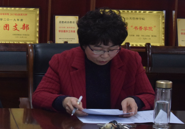 李德芳就履行全面从严治党履职情况、存在问题以及下一步工作措施做出总结,详细介绍了教工第一党支部过去一年在思想引领、组织建设、理论学习、党员管理以及党风廉政建设等方面做出的工作,分析存在问题,提出将从加强理论学习,完善组织生活制度以及创新工作方式方法等方面研究下一步工作举措。