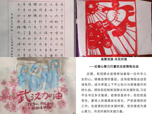 疫情就是命令,防控就是责任。作品征集以疫情防控为主题,形式不限,要求内容积极向上,展现学子们面对疫情的昂扬斗志与蓬勃向上的精神风貌。政管学子们积极参与,以文为戈,以笔为枪,记录战“疫”中的英勇和顽强;以纸为媒,以网为介,书写共同的苦难与辉煌。政管学子通过抗击疫情、宣传防疫工作的手抄报、征文、卡片、书法、视频等形式再现了抗击疫情期间一件件感人肺腑、振奋人心的事件,讴歌了战斗在一线的医疗工作者和志愿者,表达了抗“疫”阻击战必胜的信心其表达方式虽各有不同,却共同展现了作为当代大学生应有的责任担当。活动后,学院挑选出优秀作品通过微信公众平台进行推送,为战“疫”加油助威。
