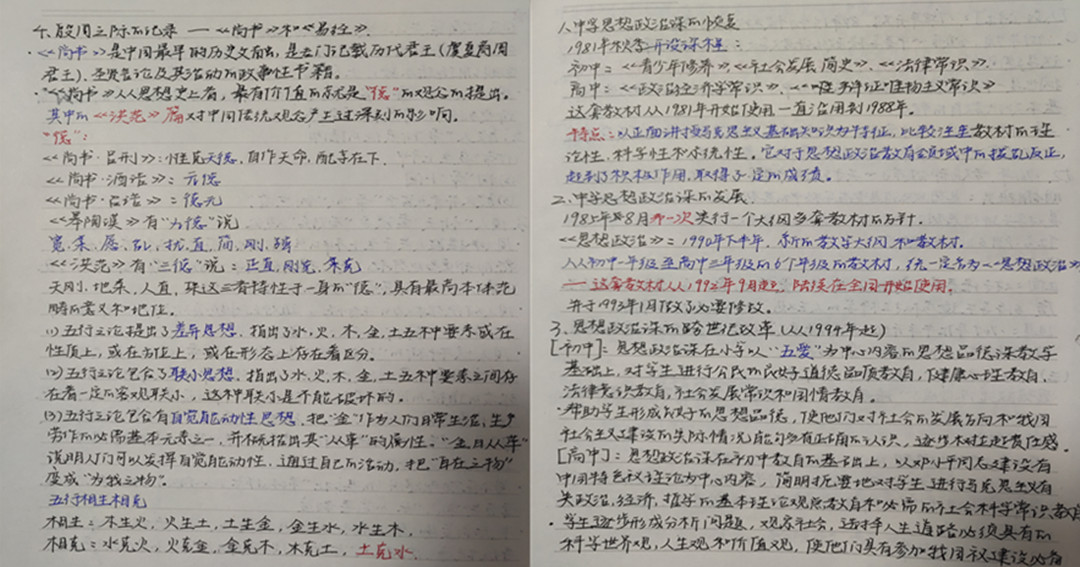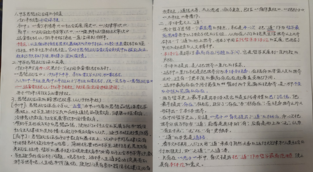 作为一名聊大政管学子,在疫情期间积极响应“停课不停学”的号召,对于这次特殊意义的网上授课更是倍加珍惜,俗话说:“好记性不如烂笔头”。教师通过直播、视频等方式授课,同学按照上课时间观看学习,并做好笔记工作。平时,张文佩同学也有记笔记的习惯,能及时记录下自己在日常学习、生活、工作中的疑惑、难点、重点及核心重要的东西。她曾说:记录笔记本身就是学习的过程,对于比较懒散的人来说,记录不失为一个能够强迫自己主动学习的方法