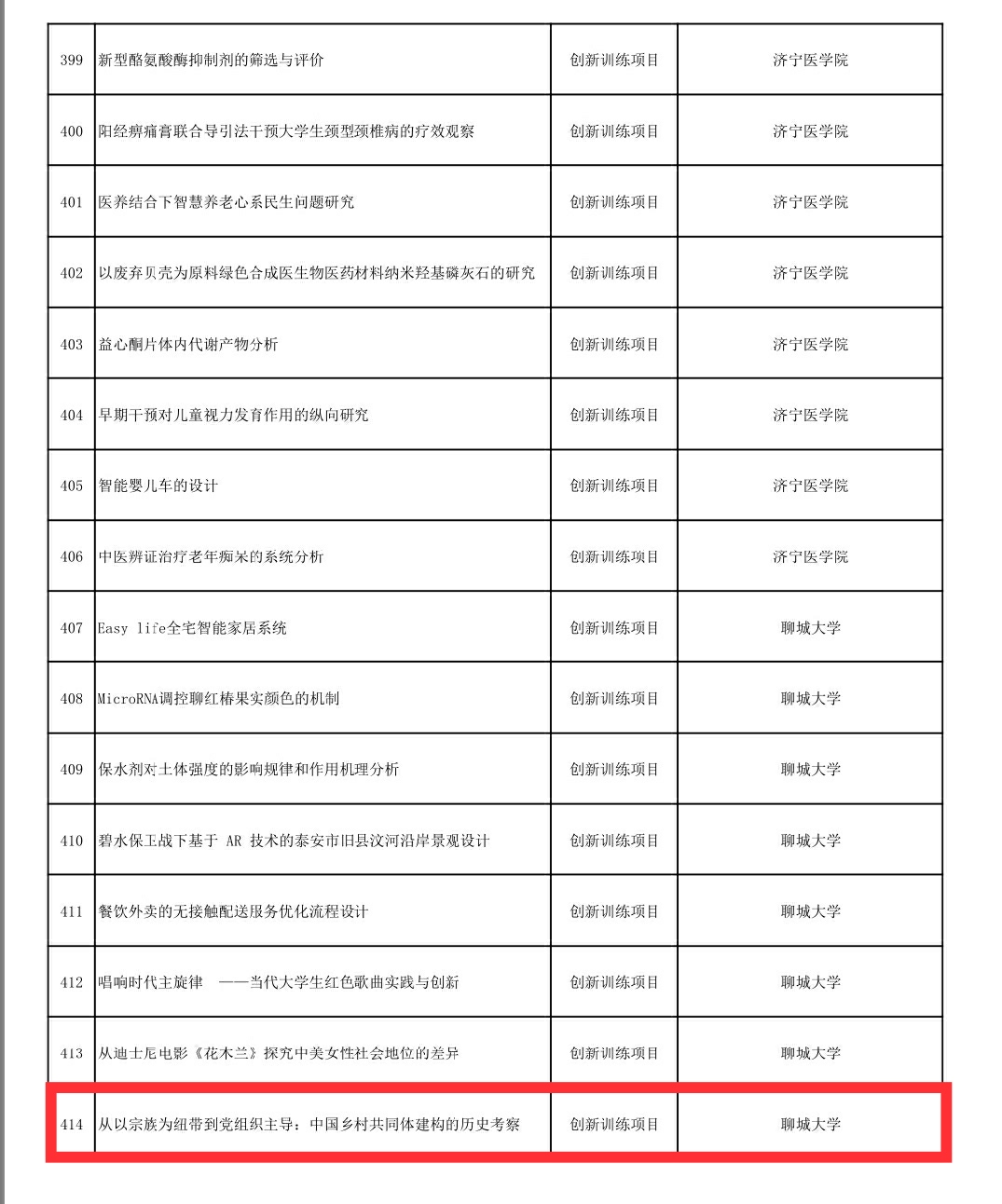 近日,山东省教育厅公布了2020年拟立项省级大学生创新创业训练计划项目名单》,我院党总支副书记、副院长季昌伟指导的“网格化管理视域下农村远程医疗的实践路径探析——以聊城市东昌府区为例”项目及邹庆国教授指导的“从以宗教为纽带到党组织指导:中国乡村共同体建构的历史考察”项目成功入选。