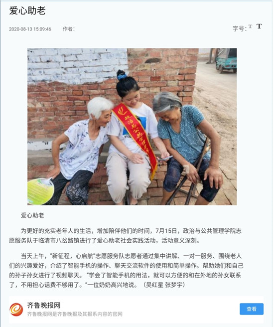 【齐鲁晚报】报道555电影 举办“爱心助老”活动