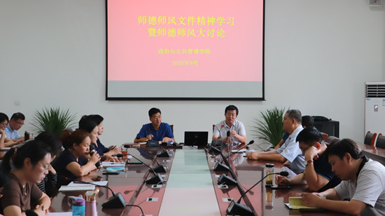 学院组织全体教职工展开师德师风大讨论,陈延庆教授、孟伟教授、刘晋副教授、刘琳琳博士先后发言。