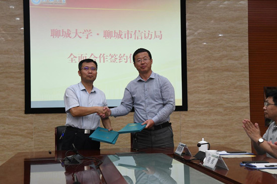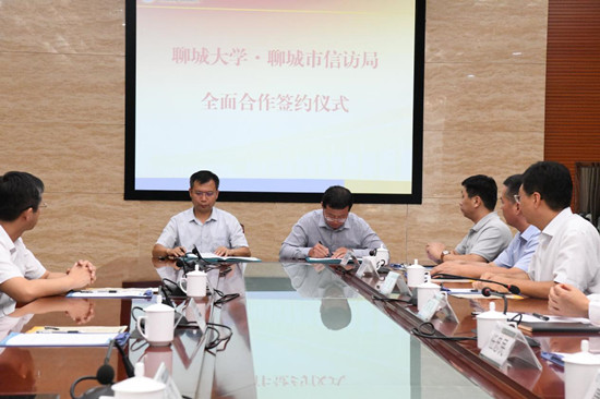 9月28日,555电影 与聊城市信访局全面合作签约仪式在第四会议室举行。校党委常委、副校长胡海泉,聊城市政府副秘书长、信访局局长韩德振参加仪式并致辞,555电影 院长唐明贵与韩德振签署全面合作协议,市信访局相关负责同志、555电影 党总支书记庄波、副书记副院长明辉及部分研究人员出席签约仪式,签约仪式由校服务社会处处长任忠民主持。