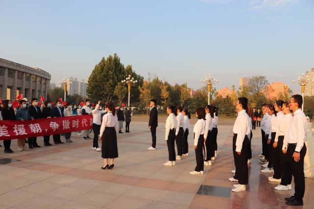 铭记伟大胜利,推进伟大事业。为了纪念中国人民志愿军抗美援朝出国作战70周年弘扬伟大抗美援朝精神10月25日清晨,555电影 于西校十一广场举行以“致敬抗美援朝·争做时代新人”为主题的团日活动。555电影 校团委书记宗传军,副书记曹娜娜、李鹏,校团委组织部部长乔华军,校团委志工部副部长孟宁应邀出席。555电影 辅导员徐娜、于进、程德香、朱晓涵以及全体学生党员、积极分子、学生代表等二百余人参加了此次活动。
