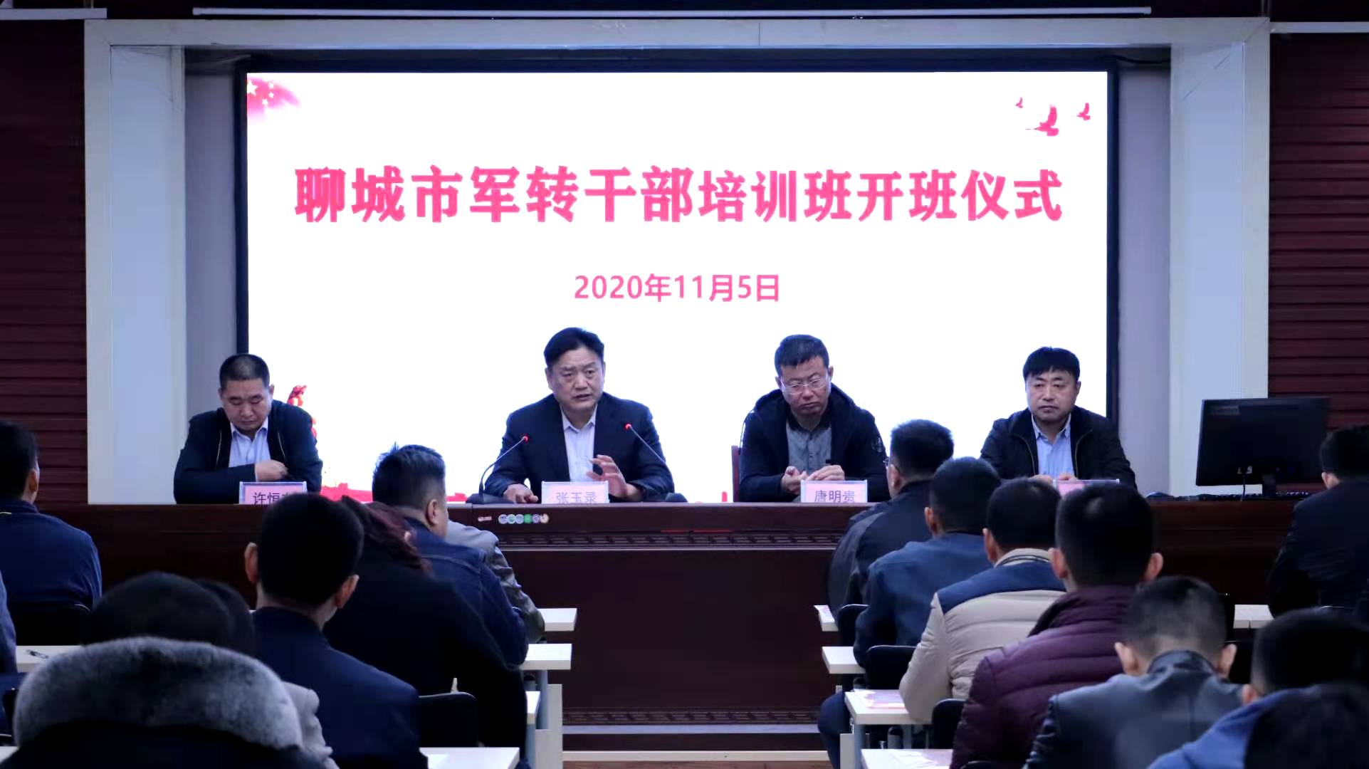 11月5,聊城市军转干部培训班举行开班典礼。聊城市退役军人事务局局长张玉录、副局长许恒友,555电影 院长唐明贵、双拥学院院长秦正为及参训学员50余人参加开班典礼。