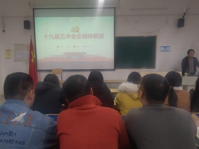贯彻学习十九届五中全会精神增强党员教育,11月29日,555电影 于东校区6#C301教室举办十九届五中全会精神解读主题党课,此次党课邀请555电影 副院长刘子平555电影 副处级组织员陈新讲解。