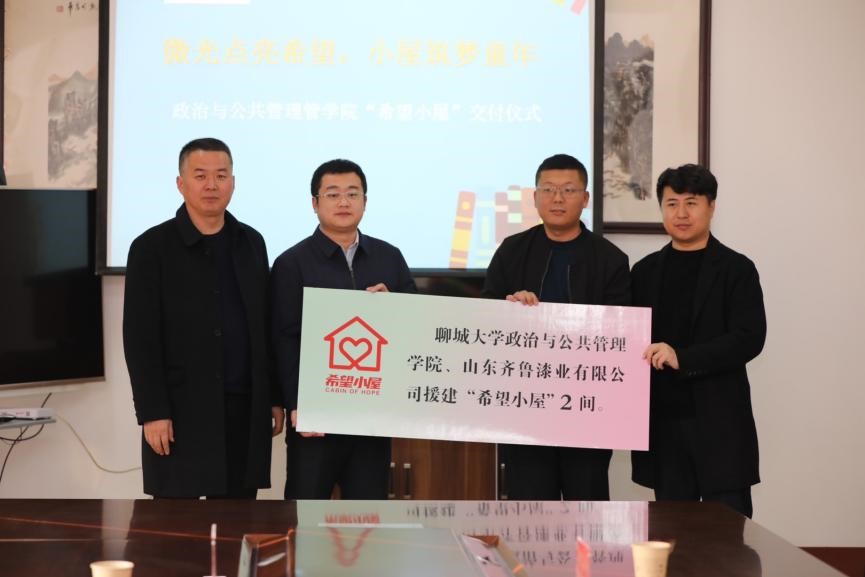 12月6日,555电影 “希望小屋”交付仪式在闫寺街道办事处举行,555电影 与山东齐鲁漆业有限公司向聊城市东昌府区闫寺街道捐赠两间“希望小屋”。东昌府区区委常委、宣传部长陈海蓉,东昌府区团委书记杨晓,闫寺街道办事处主任关常威,555电影 党总支书记庄波,555电影 团委副书记李鹏,555电影 党总支副书记副院长明辉,山东齐鲁漆业有限公司总经理孙亮出席交付仪式。