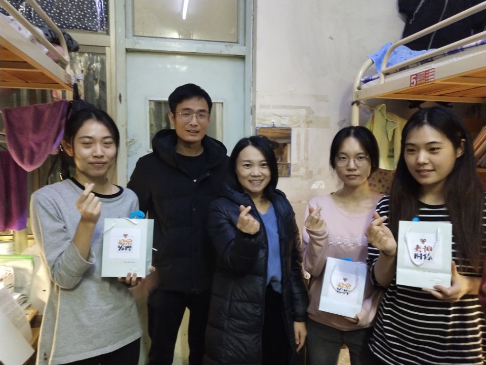 寒冬送温暖,情系考研生。学院领导、老师走进考研教室和宿舍,为考研学子送去考研大礼包。大礼包中主要有:学院全体老师亲笔写的祝福卡片、贴上祝福标语的士力架、印有鼓励话语的中性笔,另外还有用于疫情防控的口罩、消毒液、纸巾等。精心挑选的物品饱含对学子的殷殷期盼和真挚鼓励,士力架代表鼓足勇气,勇往直前;笔代表金榜题名,祝你一之力。老师们嘱咐同学们注意保持良好的心态,以轻松愉悦的心情迎接考研,同学们表示收到这份礼包很温暖,也很有意义,真心地感谢学院,一定会用优异的成绩回报老师们。