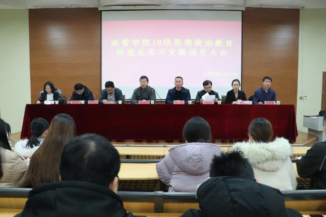 为贯彻落实555电影 关于做好2021年上半年师范生实习支教工作的通知,保障实习工作的顺利开展,部署支教相关事宜,动员同学们认真完成实习任务,18日,555电影 于东校区6#C106举行18级思想政治教育师范生支教动员大会。出席本次大会的有555电影 院长唐明贵党总支副书记、副院长明辉副院长刘子平以及邹庆国、高庆涛、刘琳琳、李梅娟等指导老师,会议由陈成老师主持,18级思想政治教育专业全体同学参加。