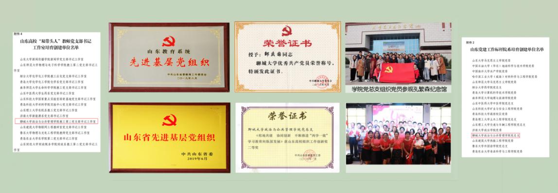 学院党总支深入贯彻以习近平同志为核心的党中央关于新时代坚持和加强党的全面领导的重大部署,按照新时代党的建设总要求,以加强学院党的先进性和纯洁性建设为主线,以强化政治功能、组织功能和服务功能为重点,以党建工作和中心工作双融合、双促进为原则,完善体制机制,搭建平台载体,创新方式方法,凝练工作特色,打造党建品牌,学院党的建设工作质量和科学化水平显著提升,党总支领导班子团结、廉洁、务实、创新,党总支的政治核心作用、党支部的战斗堡垒作用和党员的先锋模范作用发挥充分,为推动学院科学发展提供了坚强有力的政治、思想和组织保证。2019年3月学院党总支获评山东党建工作标杆院系培育创建单位,6月同时获评“山东省先进基层党组织”和“山东教育系统先进基层党组织”。2019年4月学院教工第二党支部书记工作室获评首批山东高校“双带头人”教师党支部书记工作室培育创建单位。党建工作引领作用的充分发挥,有力地推动了人才培养、科学研究、学科建设、社会服务等各项工作的顺利进行,学院连年在全校年度目标管理考核中获优秀等级。