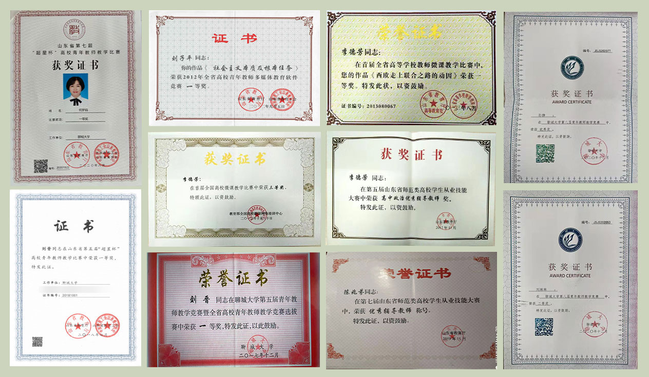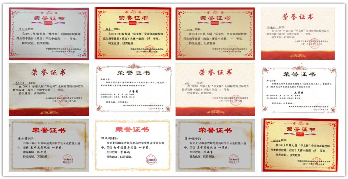 学生专业技能扎实,在各类竞赛项目中获省级及其以上奖励1000 余项,校级奖励2700余项。其中,学院《山东省禁养区政策实施中的问题分析及对策建议--以聊城市东昌府区为例》项目2019年参加第十六届“挑战杯”全国大学生课外课及学术作品竞赛获全国三等奖、省赛特等奖,实现学院在创新实践赛事上的重大突破;同时获批全国大学生创新创业项目3项、山东省挑战杯创业计划大赛铜奖1项;山东省第三届志愿服务项目大赛摘得银奖、铜奖各1项;获全国诗书礼乐大学生主持人大赛一等奖1 项;获山东省师范生教学技能大赛一筹奖4项;获全国大学生英语竞赛特等奖5项、一等奖22项;获山东省创未来大学生职业生涯规划大赛铜奖; 43人获“华文杯”全国师范生技能大赛特等奖、一、二、三等奖11人获山东省高校师范生从业技能大赛特等奖、一、二、三等奖。