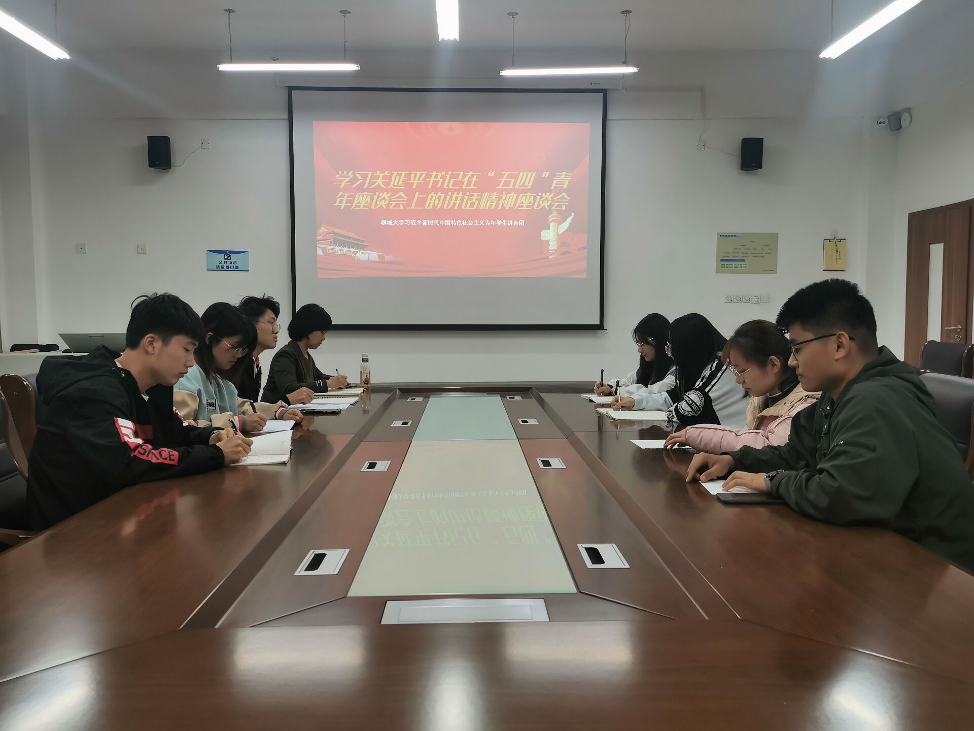 在座谈会上,讲师团团长李宣志带领成员们回顾了关延平在“五四”青年座谈会上的讲话要点,对关延平所提出的青年学生要学好“五四"历史,继承发扬五四精神;青年教师要立德树人,争做“四有"好老师;各级党团组织、领导干部要凝聚共识,协同发力,合力做好青年工作的三点要求进行了深入的学习与理解。同时,讲师团根据关延平所提出的青年学生要认真重读五四运动史,弘扬五四精神这一要求,结合现阶段讲师团的任务安排对五四精神进行集体备课。在备课过程中,成员们对青年学生为什么要学习五四精神、应该用什么样的形式与方式讲好五四精神、如何更好地激发同学们的学习兴趣等问题进行了热烈的讨论,积极探索多种授课模式激发同学们的学习热情。
