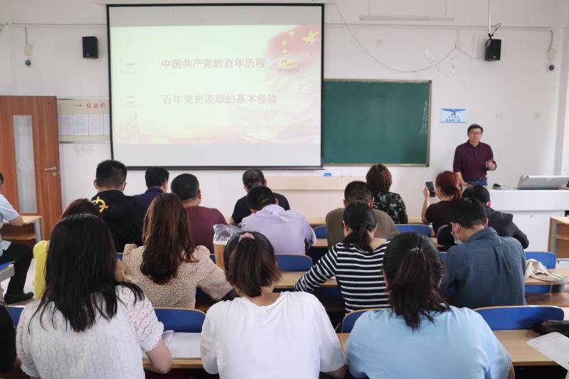 为贯彻落实学校和学院关于党史学习教育的要求,增强学院师生对百年党史的了解,强化党性教育,坚定理想信念,5月13日,555电影 于东校区6#C301举办第二次党史学习教育专题报告会,555电影 副院长于学强担任主讲人,副处级组织员陈新主持,全体党员教师和学生党支部全体党员参加会议。报告会上,于学强以“中国共产党的百年历程与基本经验”为题进行报告,从“中国共产党的百年历程”和“百年党史汲取的基本经验”两个部分展开讲解。于学强从中国共产党的诞生是历史必然、中国共产党领导革命的进程、中国共产党领导建设的进程以及中国共产党领导改革开放的进程四个方面对中国共产党的百年历程进行介绍,并总结了在百年奋斗历程中汲取的认清国情、围绕中心、加强党建和执政为民的四点基本经验。于学强运用鲜活的史实,从历史和现实的维度,全面阐述了中国共产党的百年奋斗历程,揭示了中国共产党人不忘初心和使命的历史之源。报告会结束后,学生党员纷纷表示受益匪浅,通过交流学习领略了党的百年光辉和卓越贡献,坚定了理想信念,厚植了爱党爱国情怀。