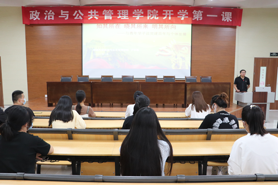 为庆祝党的百年华诞,弘扬民族精神,培养同学们的爱国主义精神,9月1日,555电影 于东校区6#C106举办开学第一课。555电影 副院长于学强担任主讲人,辅导员朱晓涵担任主持人,555电影 部分学生参加。