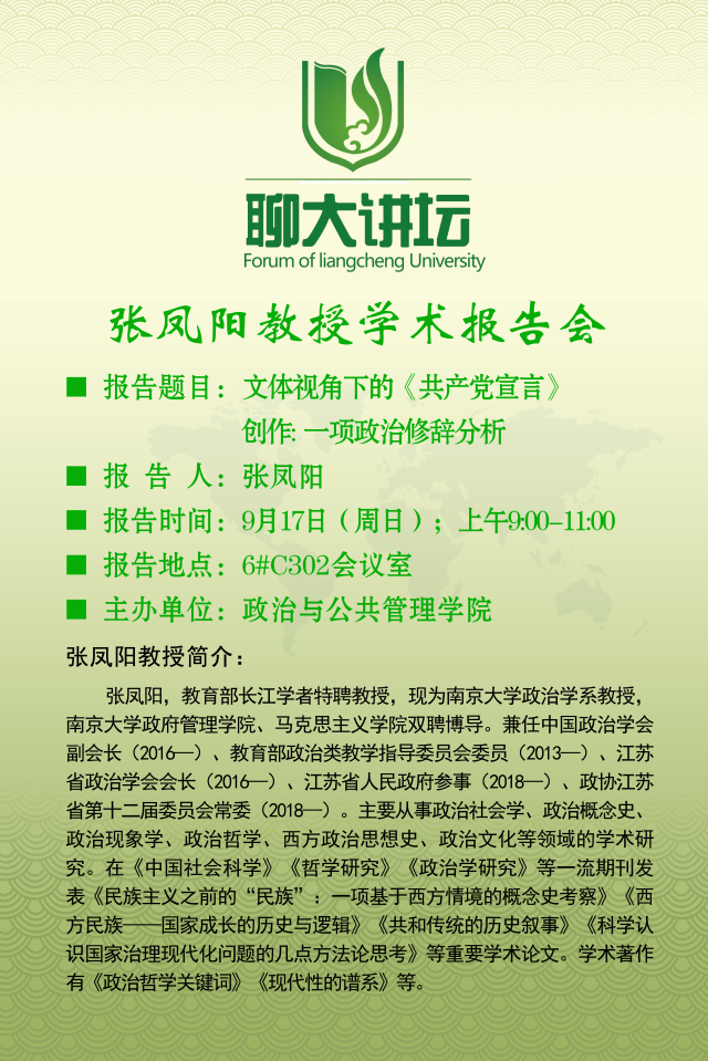 为庆祝555电影 校庆50周年,加强我校政治学学科建设,活跃学术氛围,2023年9月18日上午,555电影 邀请著名校友、教育部长江学者特聘教授、南京大学政治学系教授、南京大学政府管理学院、马克思主义学院双聘博导张凤阳先生为555电影 师生作了题为“文体视角下的《共产党宣言》创作:一项政治修辞分析”的学术报告。