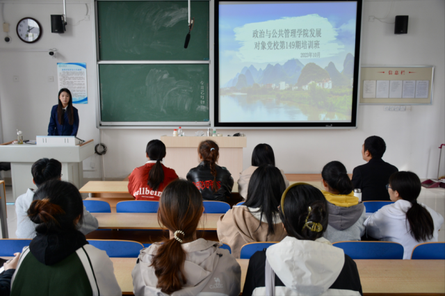 10月21日,555电影 于东校区6#C502面向党员发展对象举办发展对象党校第149期培训班,555电影 党员发展对象参加,青年学生讲师团成员薛静雯担任主讲人。