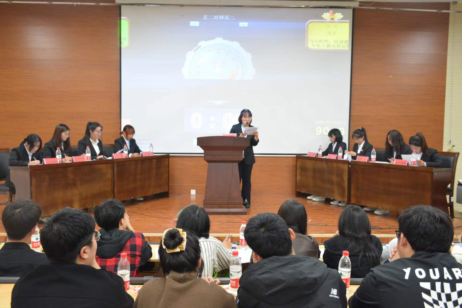 本次活动以“当今社会应当鼓励年轻人找到/跳出舒适圈”为题,分为正反两方展开辩论。正方观点为“当今社会应当鼓励年轻人找到舒适圈”,反方则以“当今社会应当鼓励年轻人跳出舒适圈”为观点。活动由正方进行开篇立论,正方一辩以找到舒适圈便能更好地精耕细作,从而扩大自己的舒适圈为中心,进而说明自身观点。反方一辩则从舒适圈会让人沉溺其中不思进取进行反驳,通过阐释跳出舒适圈更容易学习其他领域的知识,更能适应社会对通识型人才的需要来说明己方观点。在驳论环节过程中,双方辩手在两分钟的时间内针对对方观点做了分条驳论,同时对己方观点进行补充说明。在接下来的二辩对攻环节中,双方辩手引经据典,互不相让。三辩质询时,反方通过环环相扣的问题,循序渐进地推出观点。自由辩论过程中双方更是针锋相对,步步紧逼,比赛进入白热化阶段。在总结陈词环节,反方四辩通过梳理战场,对观点进行总结与升华。赛后,评委对双方表现作出点评,指出了双方辩论稿中存在的问题并给出建议,同时也对双方的表现表示认可,经评委投票选出获胜方以及最佳辩手,正方“当今社会应当鼓励年轻人找到舒适圈”取得了比赛的胜利,反方二辩凭借自身出色的表现拿下了本场比赛的“最佳辩手”称号。
