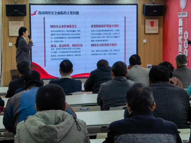 在本次专题活动中,陈凌冰围绕树立与践行总体国家安全观展开本次宣讲,从国家安全的含义,中国面临的各种复杂形势及应对方法和怎样坚持总体国家安全观三个方面阐明如何树立与践行我国总体国家安全观,高举弘扬总体国家安全观的旗帜。关于我国面临的粮食安全问题,李珞璇以世界粮食安全日为主题,从粮食安全的重要地位,我国粮食安全现状,粮食日活动安排与活动要求四个方面点明“每一粒粮食都值得被尊重”这一宣言,帮助各位同志们明白“一粥一饭,当思来之不易”的道理。随后,针对我国网络安全问题,刘佳鑫结合网络安全重中之重,中国网络安全现状和网络安全主题教育活动内容,带领各位同志们深刻领悟网络安全需要你我共同建设,在生活中提升网络安全意识,共筑网络安全保护防线。宣讲结束后,一名党员干部表示,此次活动的开展,他深刻明白国家面临的许多威胁和维护国家安全的重要性,在今后的生活中,也会为维护国家安全贡献一份力量。