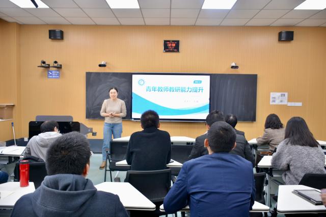 刘晋老师从何为教研、为何教研和如何教研三个方面对如何提升青年教师教研能力展开介绍。刘晋认为,教研即教学研究,作为青年教师,要发现教学中存在的问题,研究相应的方法并总结经验,提高学生的学习质量,之后她根据延玥老师的“一体两线四端”教学模式,介绍线上线下相结合的教学方法,鼓励青年教师积极寻找教研方法、拓展教研思路。随后,刘晋从教师的职守与学校的考核需要两个方面阐述教研的重要性,列举教研的种类,并表示教研是作为教师的本分,也是对课堂负责的表现。在总结交流环节,刘晋对教研的步骤进行概括总结,提出可以通过罗列方法、形成模式、化为图表、借鉴完善的方法开展教研工作,进而通过分享成功的申报书,分析“三育五通”和“一体三翼”两个教育模式对教研步骤进行解释,让青年教师对教研有了一个更为深入的了解。讲座结束后,与会的年轻教师们纷纷表示,该讲座不仅提供了一个交流教学经验的机会,帮助青年教师了解教育领域的研究成果,而且可以促进青年教师的专业成长和发展,增强青年教师的职业素养和教育教学能力。