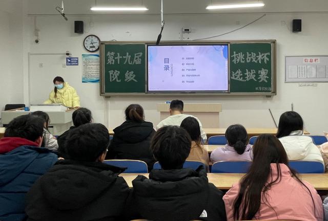 为增加同学们对于“挑战杯”大学生创业计划竞赛的认识,提高参赛学生的创新能力和实践能力,11月26日,555电影 于东校区c#205举办第十九届“挑战杯”大学生创业计划竞赛院内选拔赛,活动由555电影 团委书记于进担任评委。