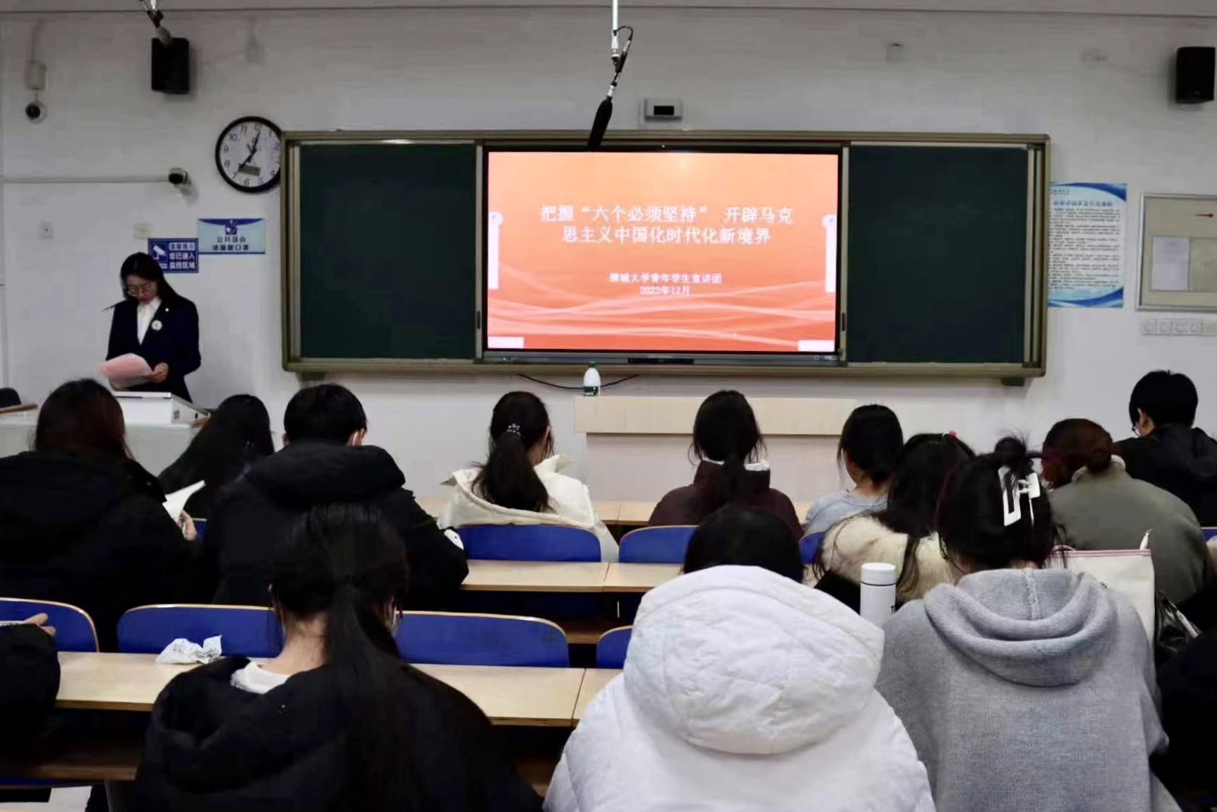 12月22日,青年学生宣讲团于马克思主义学院开展“行走的青年思政课”。本次的宣讲主题是“把握‘六个必须坚持’开辟马克思主义中国化时代化新境界”,青年学生宣讲团成员谢梦洁担任主讲人。