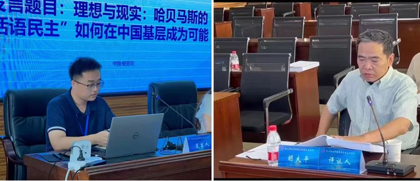 4日上午,梁桂杉在第五分论坛“对早期西方马克思主义和法兰克福学派的新阐释”作了题为《理想与现实:哈贝马斯的话语民主如何在中国基层成为可能?》的主题发言。该同学在发言中指出,哈贝马斯所建构的话语民主虽然是理论性构想,但通过梳理这种民主范式的核心内涵,发现现实社会确实具备“话语民主”付诸实施的要素。因此,哈贝马斯的话语民主理论并不是幻想,而是可能实现的理想,同时也在一定程度上能够为我国基层协商民主机制的完善提供必要借鉴经验。南京大学马克思主义学院院长胡大平教授随后对梁桂杉所作的发言进行了评议。胡大平教授对文章的问题意识与创新性思考进行肯定,同时也阐明了文章的不足之处,并提出几点建设性修改意见。