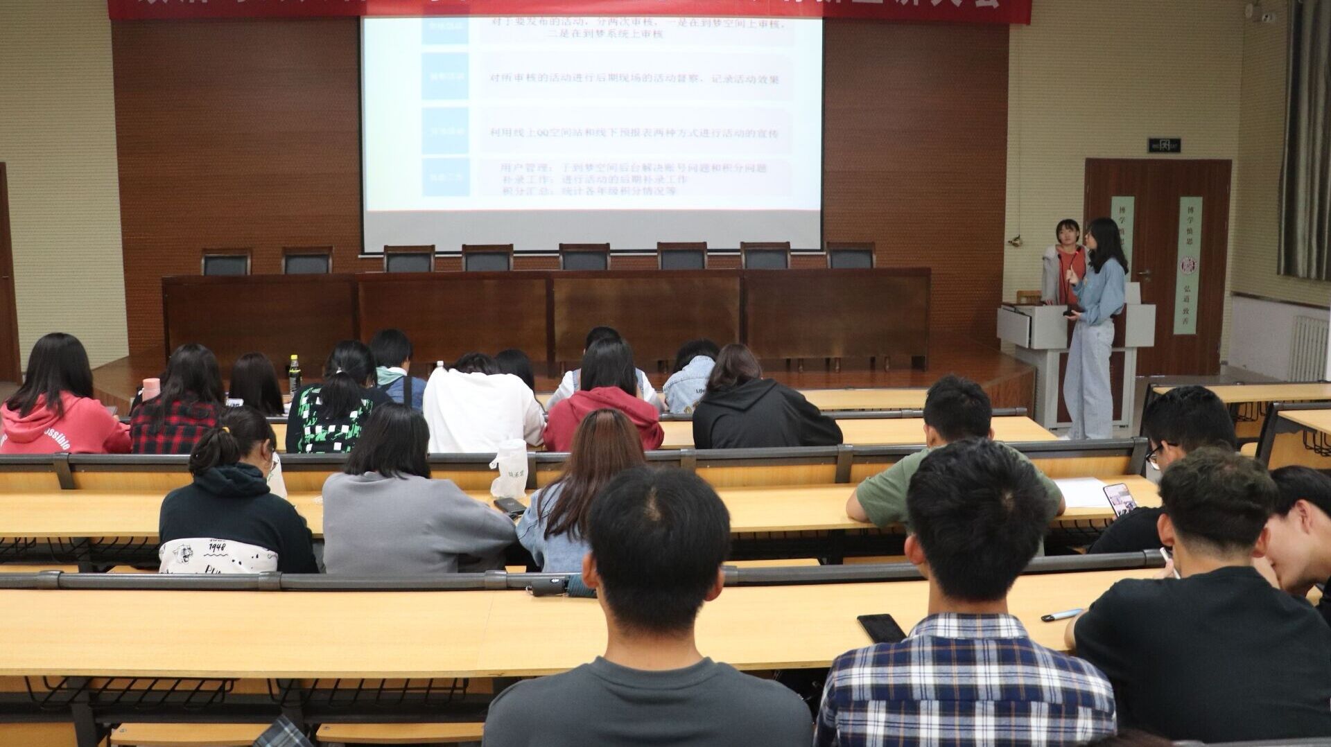 宣讲会上,学生会第二课堂成绩单运营部部长潘昊担任宣讲人就“第二课堂成绩单”制度,进行了详细的讲解,讲解指出:作为“第二课堂成绩单”制度的载体,“到梦空间”是一款以帮助大学生规划道路、加入学生社团部落等为主要功能的大学生校园软件,强调出同学们要认真对待活动,严格落实要求,切忌形式主义。在补充说明中,潘昊深入介绍到活动的分类及相关要求,指出同学们要认真规划自身的发展路线,在制度的指引下全面均衡发展。除此之外,潘昊还亲自操作“到梦”,将“到梦”使用过程投放展现给同学们,给予同学们更直观的感受与体会。经过宣讲人的细致讲解和实际操作,同学们更加明确“到梦空间”的使用方法,纷纷表示会利用好“到梦空间”,将其作为自身培养自主能力、提高综合素质的有效途径。