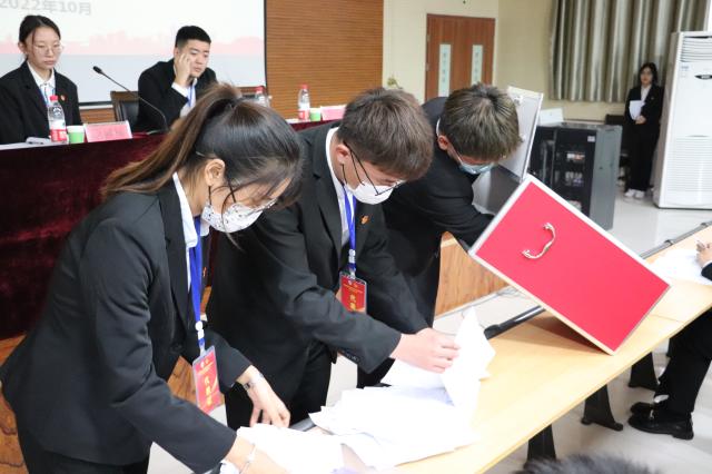开幕式后,学院团代会、学代会、研代会,按照各自日程安排开展相应工作。于进代表团的第二届委员会、罗田代表2022届学生会、荣小语代表2022届研究生会分别向大会做了工作报告,并通过无记名差额选举方式选举产生了学院第三届团的委员会委员8名、新一届学生会主席团成员3名、新一届研究生会主席团成员3名。