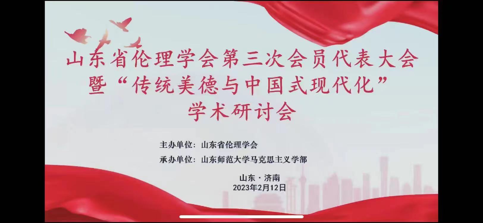 2023年2月12日,山东省伦理学会第三次会员代表大会暨“传统美德与中国式现代化”学术研讨会在济南召开,会议采取线上线下方式召开。