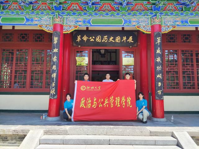 7月16日,服务队赴陕西省西安市革命公园开展研学活动。在革命公园,服务队成员先后前往刘志丹同志汉白玉石像、烈士祠、革命亭和杨虎城将军铜像等地进行参观学习,了解革命烈士的英勇事迹。在承载着西安近代革命军民大无畏精神的合冢前,服务队成员自发默哀,将自己对革命先辈的无尽怀念留在这座公园中。