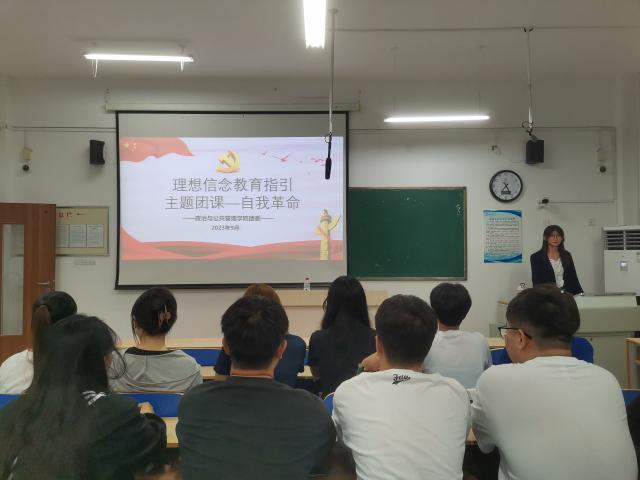 此次团课以“自我革命——党跳出历史周期律的第二个答案”为题,主要围绕“党历史上的自我革命”、“自我革命的内涵”、“自我革命的第二个答案”和“自我革命的现实启示”四个方面展开,阐述党自我革命的正确性和必要性,彰显中国共产党执政的正确性和先进性。通过讲解毛泽东与黄炎培的窑洞对、习近平总书记在中国共产党第二十次全国代表大会上所作报告,进一步强调自我革命是加强党的自身建设的必然选择。同时,陈凌冰对端正入党动机、入党申请书的撰写规范、发展党员流程等方面进行介绍,刘心悦为同学们讲解党章的主要内容、党员的权利与义务以及党的基层组织制度等,进一步增加同学们对中国共产党的认识。活动主讲人鼓励同学们要加强相关先进思想政治理论学习,提升自身的思想政治素养和科学文化水平,积极入团入党,坚定不移跟党走,努力向党组织靠拢,在实践中不断提高自身能力,为学院服务。宣讲结束后,张体政表示:“作为新青年,我们应该树立马克思主义理想信念,在思想上靠近党组织,不忘初心、牢记使命,勇担时代发展的重任”。