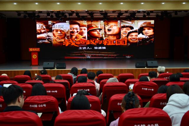 本次放映的电影是«我和我的祖国»。电影放映前,徐盛楠对此次观看的影片作简单地介绍,强调同学们要从影片中领悟爱国精神,为祖国的发展贡献力量。电影重温了新中国成立70周年间普通百姓与祖国发展息息相关的七个动人故事,以小人物为中心,进而映射出新中国70年来巨大的发展与改变。电影聚焦大时代大事件之下,讲述普通百姓为新中国的发展做出的努力,他们的贡献构成了国家发展的重要组成部分。影片在深刻发扬以爱国主义为核心的中华民族精神的同时,也传递了舍小家顾大家、甘愿奉献的精神,展现了普通百姓对国家的忠诚和奉献,为推动实现中华民族的伟大复兴有着重要意义。观影结束后观看者周朝阳表示,该影片呈现了国家发展的重要节点与个人命运的交织,让观众深刻地感受到家国情感的共鸣,有利于增强学生爱国观念,传承红色血脉。