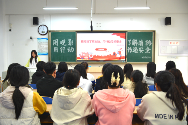 本次活动以落实消防责任,防范安全风险为宗旨,负责人强调预防火灾和减少火灾危害、加强应急救援工作、保护人身和财产安全、维护公共安全是消防工作的根本目的,并对几起影响重大的消防事故进行讲解分析,让同学们意识到消防工作在紧急时刻保护个人和财产安全的重要性。同时,负责人带领同学们温习灭火器的正确使用方法,强调使用注意事项,以加强同学们对消防知识的理解。活动中,负责人播放消防类影片《逃出生天》,该影片讲述大军和阿强两兄弟并肩营救失火高层建筑中的灾民的故事,还原火灾无情、消防员英勇无畏的场景。电影震撼的画面、真实的情感,展现出消防员舍小家为大家的奉献精神、遇见困难勇毅前行的斗争精神,引导同学们思考消防工作任务艰巨、意义重大。活动最后,负责人提问相关消防问题,与同学们进行互动交流,耐心解答消防工作的疑惑,进一步增加同学们的消防知识。参与者袁雅靖表示:“活动传播消防安全知识,增强同学们的消防安全意识,相信未来校园的用火用电会变得更加安全。”