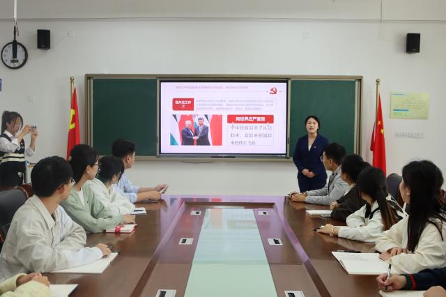 本次专题学习会由青年学生宣讲团团支部书记李珞璇、团支部副书记祁雪婷、陈凌冰三位同学进行领学。李珞璇通过十八大以来我国的经济发展水平、国内生产总值和中国特色社会主义制度等具体事例,讲述我国在经济发展、政治建设等13个方面取得的历史性成就及发生的历史性变革,帮助同学们深刻理解历史性成就和历史性变革的主要内容。随后,祁雪婷和陈凌冰分别带领同学们从深刻领悟 “两个确立”的决定性意义到增强“四个意识”、坚定“四个自信”、做到“两个维护”,再到党的二十大胜利召开的壮阔历程进行学习,进一步增加同学们对习近平新时代中国特色社会主义思想的认识和理解。