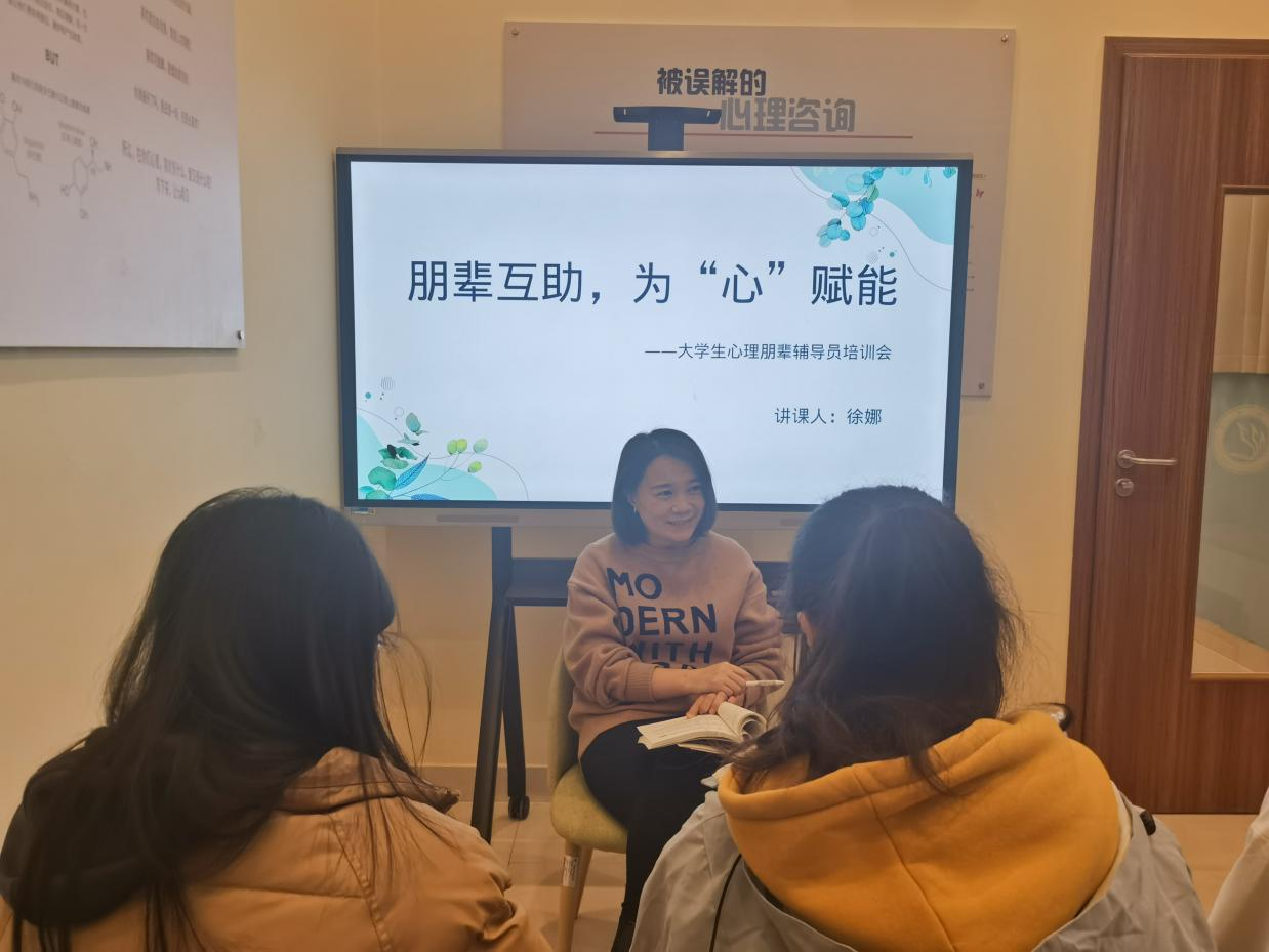 为进一步提升朋辈心理辅导员队伍的专业素养和心理辅导能力,11月25日,555电影 于东校区青听心理工作坊举办“朋辈互助,为心赋能”朋辈心理辅导员培训会。本次培训会由555电影 心理专职辅导员徐娜担任主讲人,555电影 朋辈心理辅导员参加。